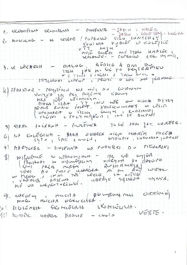 9. Skecz „Bilety do kontroli” - 1975 10. Skecz „Bliźniaki”, rok 1975. Wystąpili: Hania Gacek – pielęgniarka, Edward Gacek – doktor, Czesiek Magiera i Władysław Żur - przyszli ojcowie. 11. Skecz „Bliźniaki”, rok 1975. 12. Scenariusz programu "Cuda i dziwy" z 1975 roku.