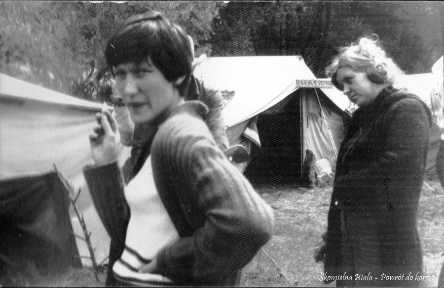 1. Członkowie kabaretu „Pod Dużym, Czarnym i Dziurowym Parasolem” przed występem w remizie na Kamieńcu. 2. Marta Madejowicz - artystka rzeźbiarka, inicjatorka założenia kabaretu. 3. Barbara Madejowicz - gawędziarka ludowa, ciotka Marty, obie z roli Otrębowej.