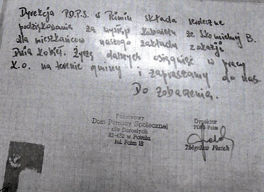 W kuńcu se myśle tak: „ Cu by tu zrobić? Psiokrynć jedna, przecie tak być ni moze!” i myśle se tak: „Przecie zaradzimy tymu” Ubrałak się rano, jakek miała na drugom zmiane i poleciałak warciutko do doktora Zdanowskiego i godom mu tak: „Panie doktorze, przyślibyście na wizyte do domu, bo teściowy sie cósi stało. Przestała godać.” No to zapisoł tam w dziynniku, ze przydzie. Przysed to był cwortek. Widziałak, ze idzie, a właściwie to łon przyjechoł tym swoim starym trabantym, no i wicie schowałak się tam w kumorze. A łon puko i godo tak: „Dzień dobry”, „Dziyń dobry”. „Ja tu mam dzisiaj wizytę zapisaną u starszej pani, że coś jest z niemówieniem, niesłyszeniem, że coś się stało…” „ A kto wos to panie doktorze tutoj wzywoł?” „No jakże kto? Pani synowa tutaj zapisała wizytę.” „E to bezkurcyja jedna! A myślałak, ze jom przetrzymom. E to cwano dziywka, cwano. Jak łona mi mogła takiego kawoła wyśwarcować. No dobre. Panie doktorze, wicie co, jo wom powiym – nic mi nie jes. Zabierojcie sie i idźcie stond”. I Marysia mi tak dali łopowiado: „Jo zek jus miała przygotawane tam 50 złotyk i zek mu dała. Panie doktorze, piyknie wom dziynkuje. Teściowo się łodezwała, znacy się, ze nic jyj nie jes.”
